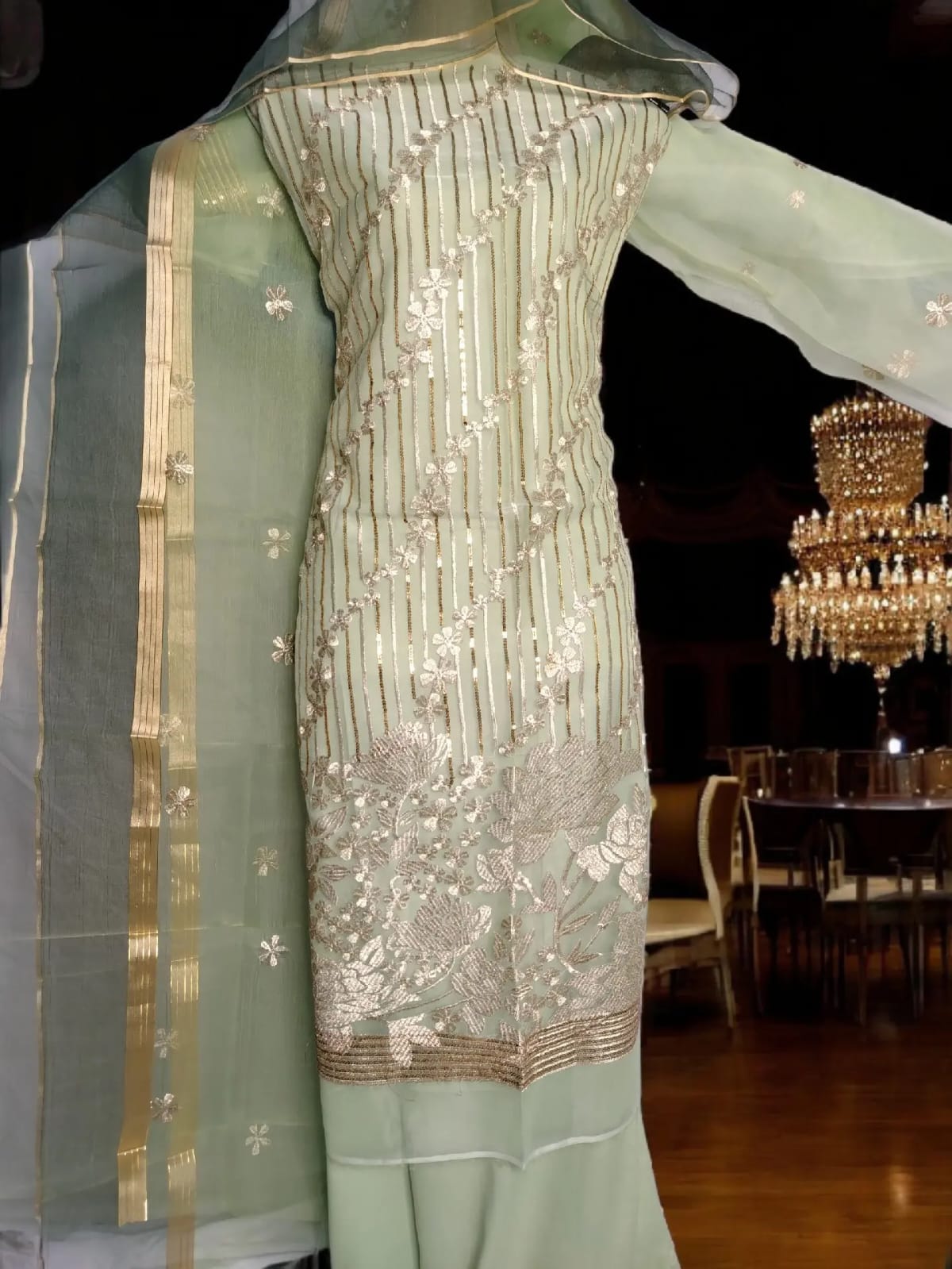 Shirt: Fully Embroidered shirt with Zari, Resham and sequence work