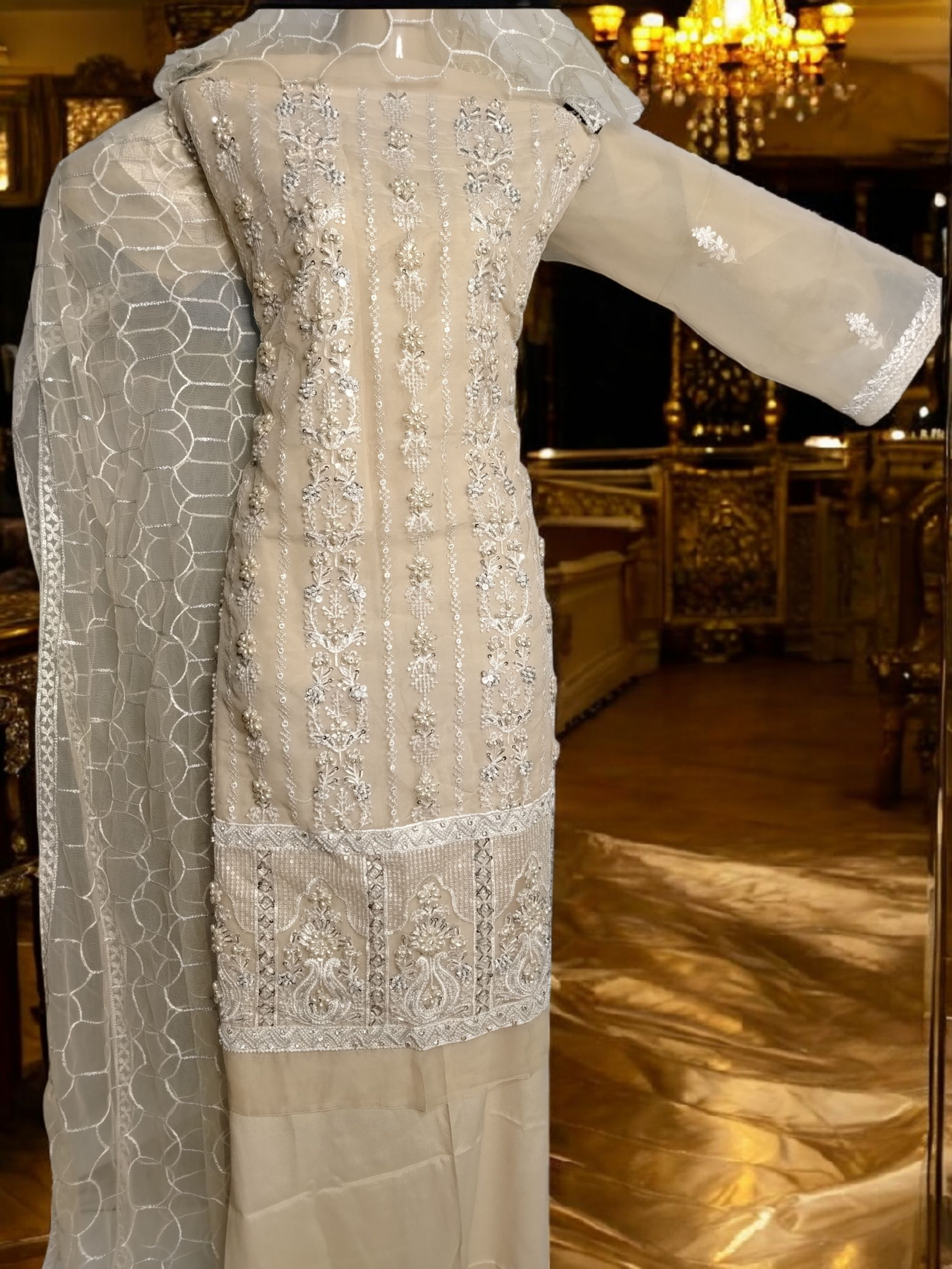 Khirad Heavily Embroidered and Hand work (Adda work) 3-piece Luxury Organza Dress