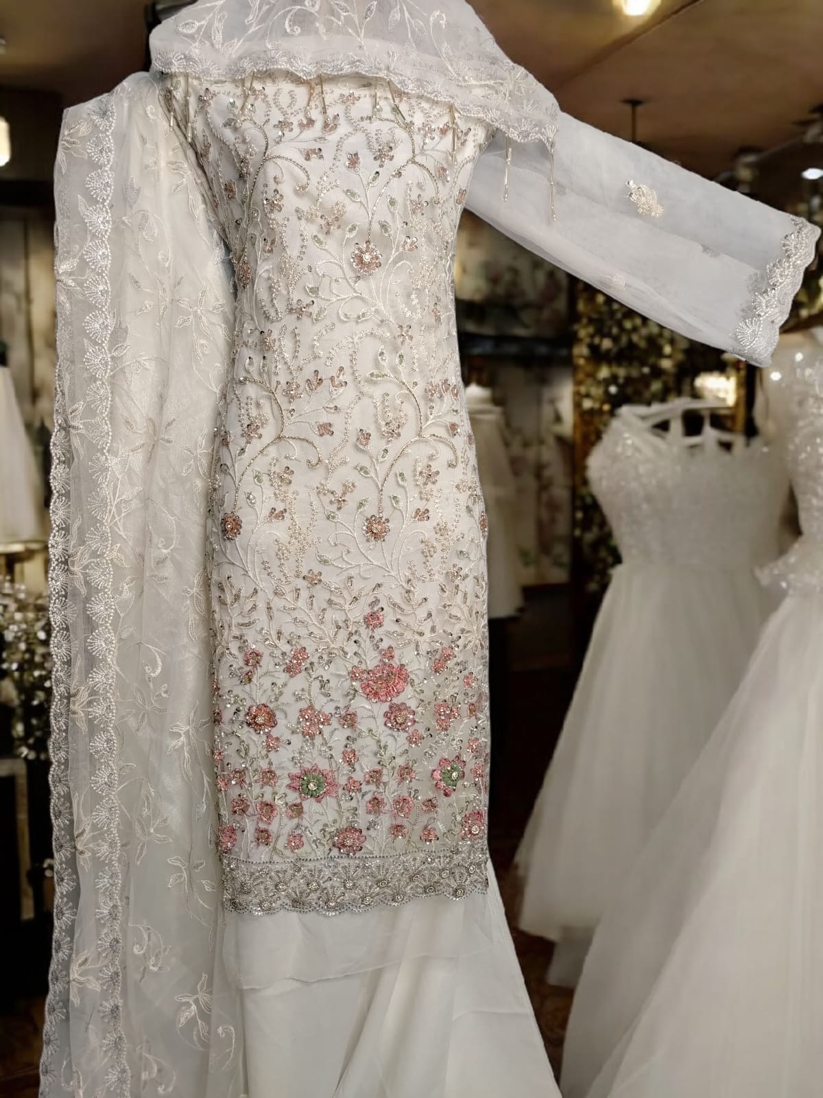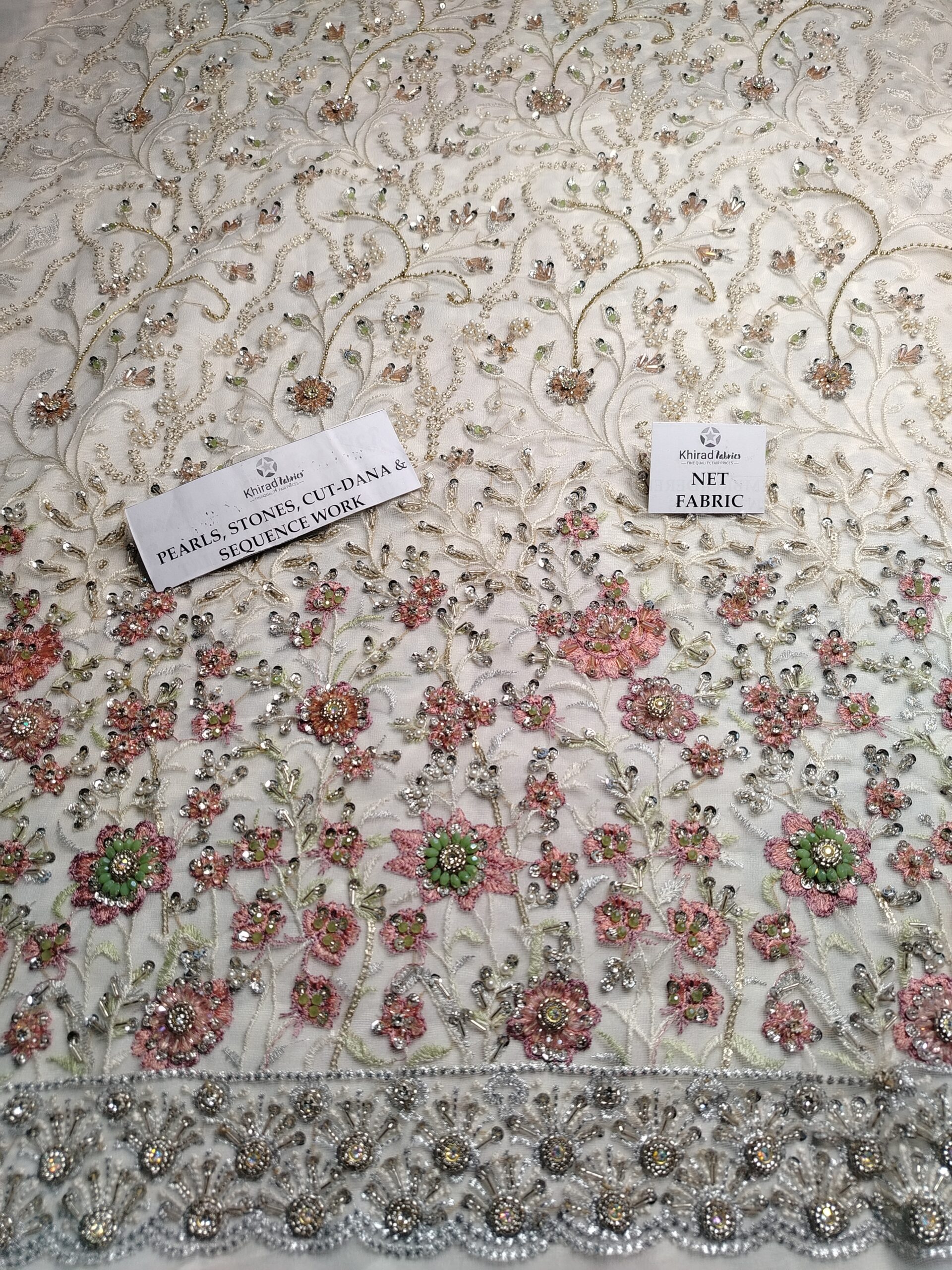 Khirad Heavily Embroidered and Hand work (Adda work) 3-piece Luxury Net Dress