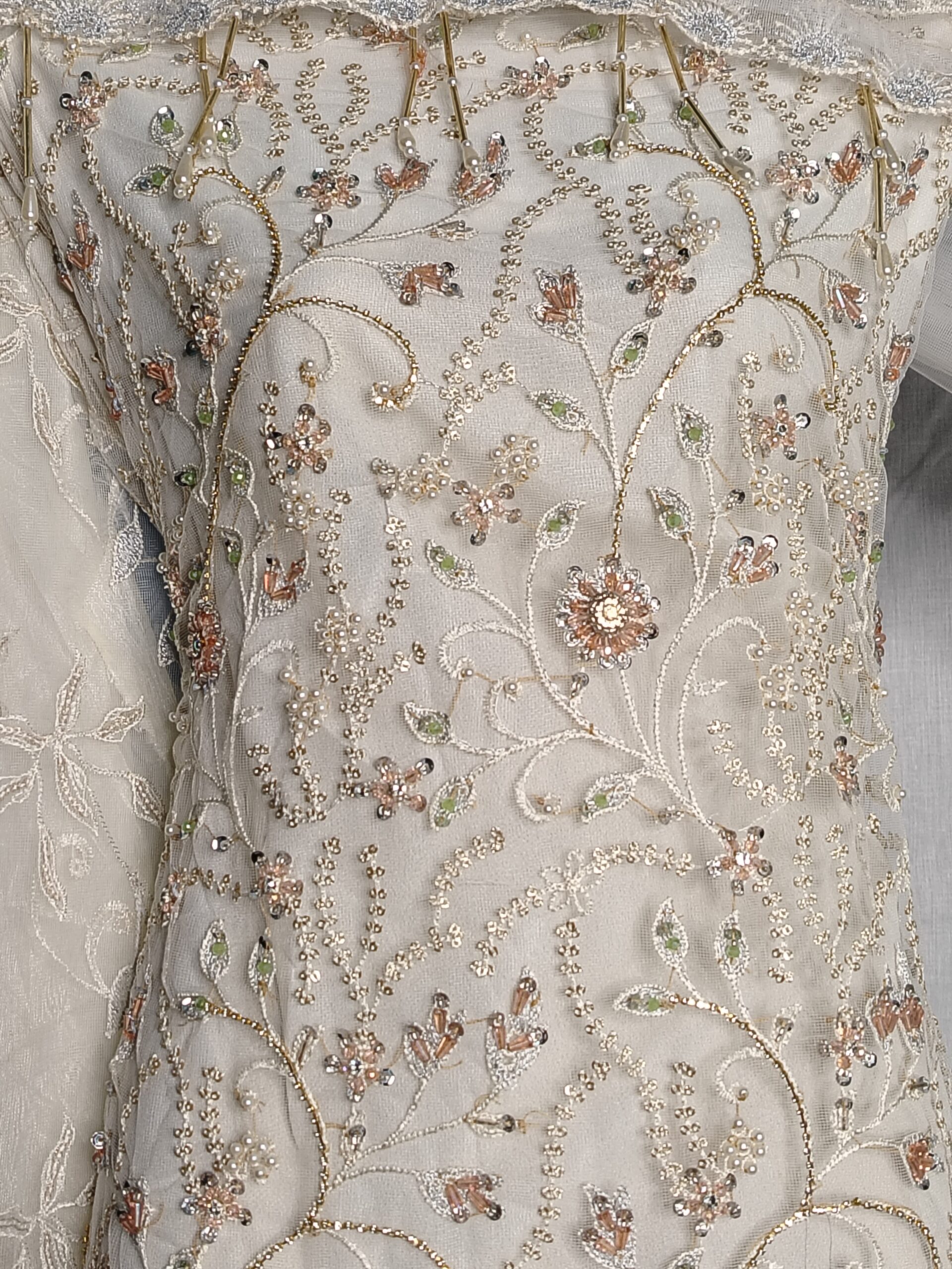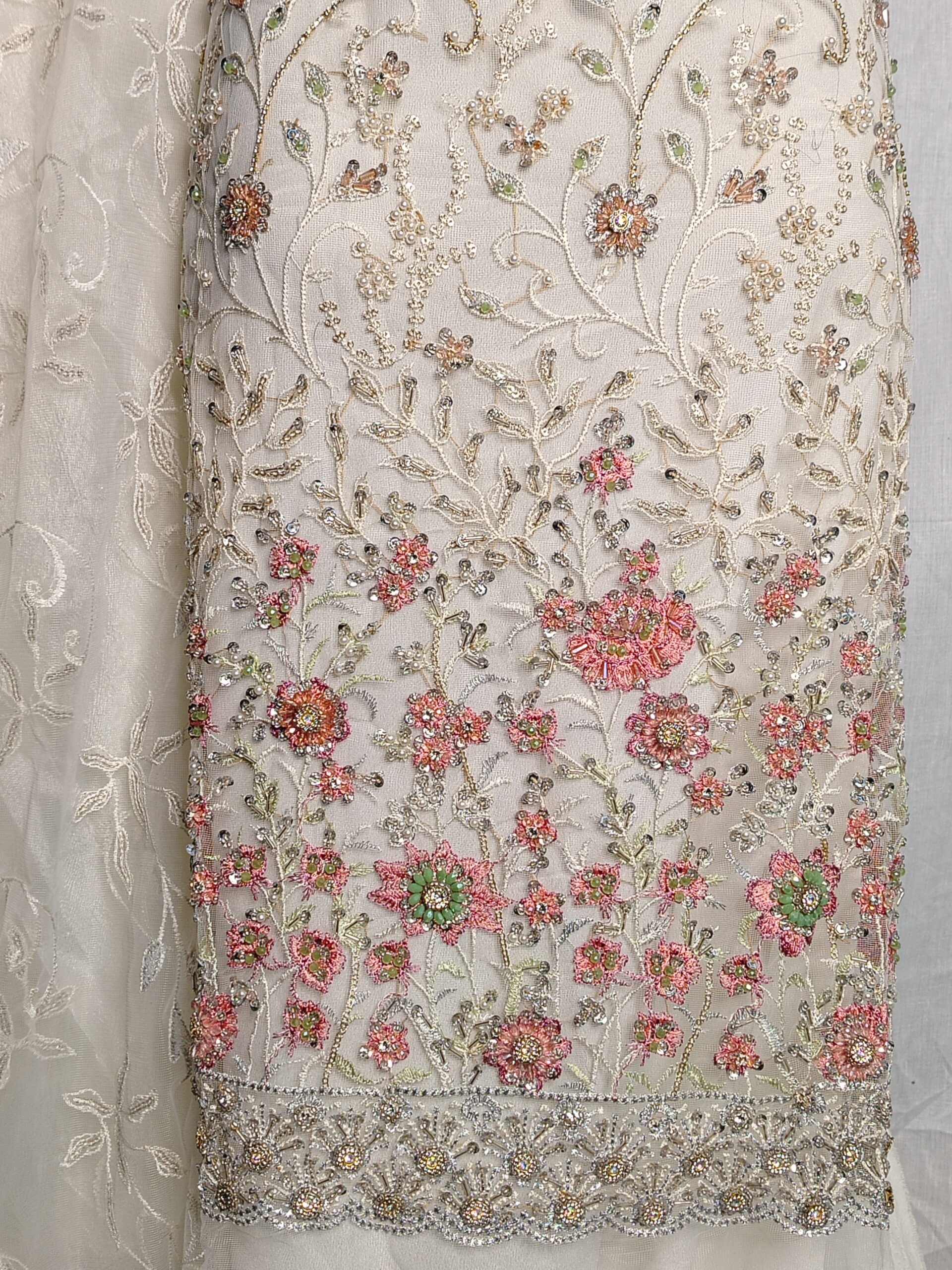 Shirt: Heavily Embroidered (adda work) shirt with Zari, Resham, sequence, Pearls, Stones, Beads, and Cut-dana work.