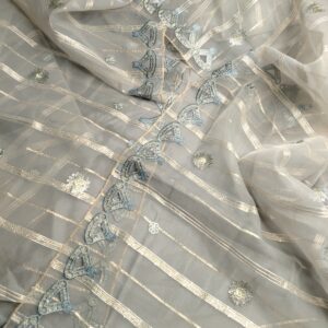 Hand made Heavy embroidered shirt with Grey Resham, sequence, Pearls, Stones and Beads work.