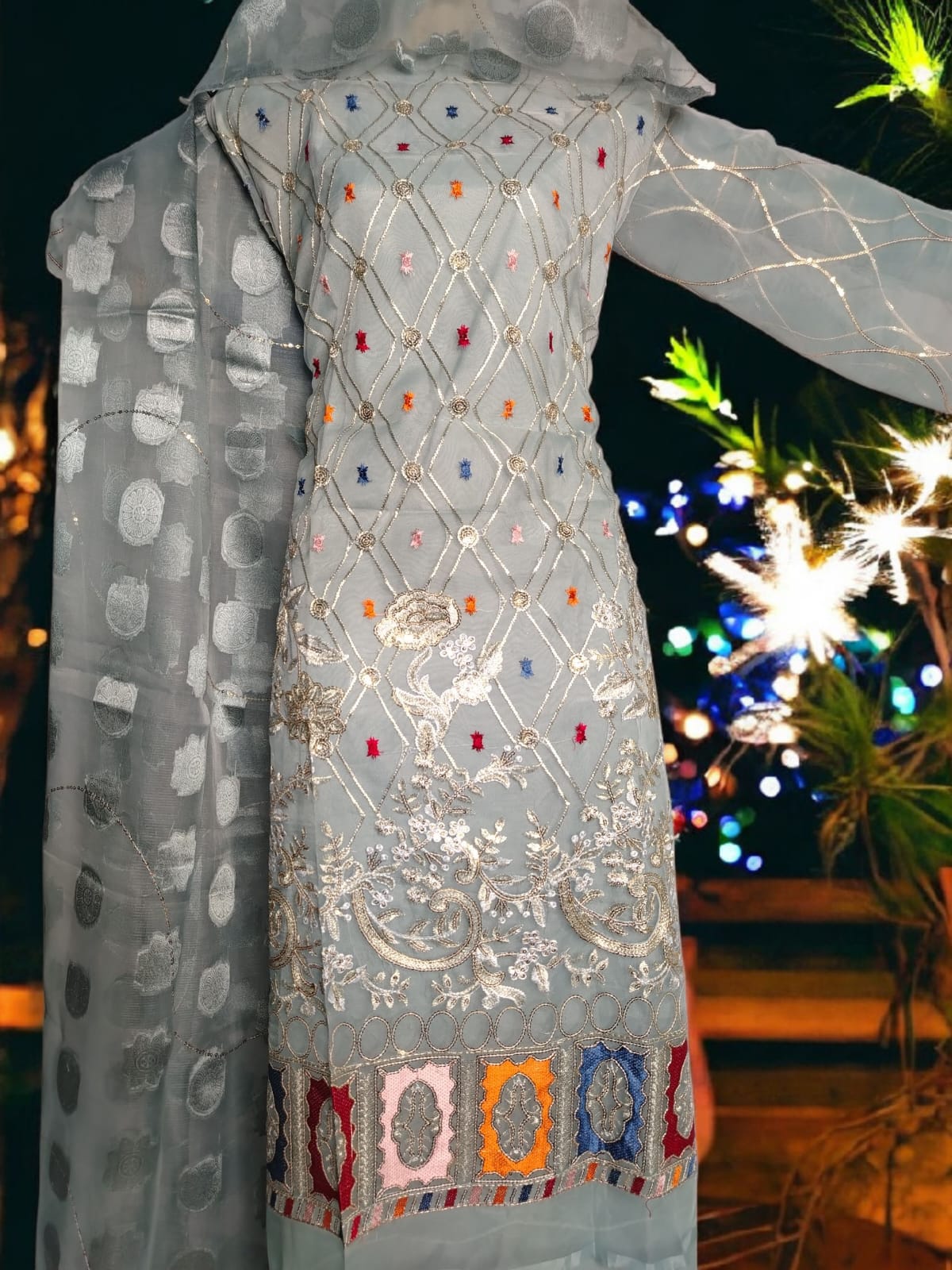 Heavily embroidered Maxy or 3-piece unstitched party wear